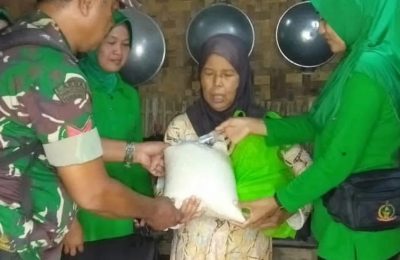 Dalam Rangka HUT TNI-AD Ke 77 Koramil 0106/Menes Bersama Persit KCK Ranting 07 Menes Serahkan Bantuan Paket Sembako
