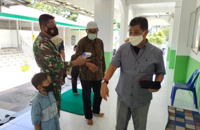 Babinsa Kel.Rintis Laksanakan PPKM Mikro Dengan Pengawasan dan Pemeriksaan Warga di Mesjid