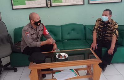 Monitoring pelaksanaan Pembelajaran Tata Muka (PTM) di sekolah, Bhabinkamtibmas Polsek Mancak koordinasi dengan pihak sekolah