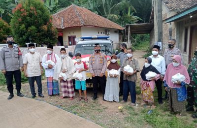 Jalin silaturahmi dan bagikan bansos, jajaran Polsek Mancak bersama unsur Muspika Kecamatan Mancak melalui kegiatan safari kamtibmas
