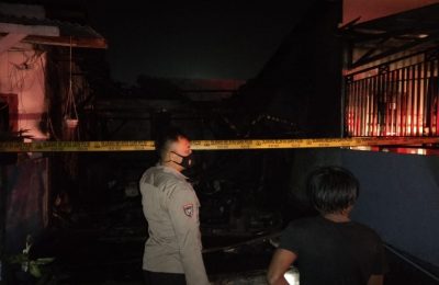 Si Jago Merah Bakar Rumah Warga Tamansari Kapolsek Pulomerak dan anggota Bantu Padamkan Api