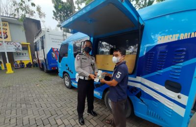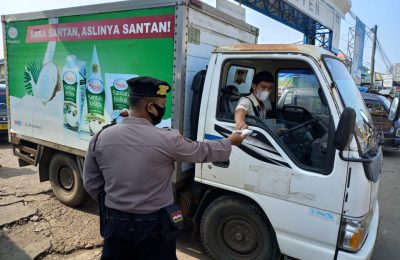 Sat Samapta Polres Pandeglang Berikan Himbauan Prokes Sekaligus Bagikan Masker
