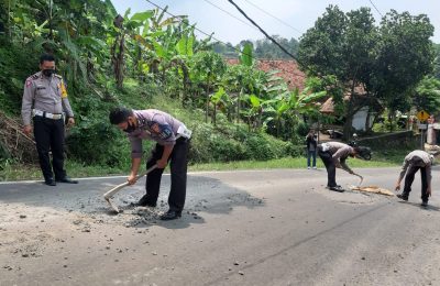 Kerap Terjadi Kecelakaan, Unit Laka Satlantas Polres Pandeglang Bersihkan Matrial Coran