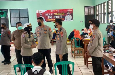 Kapolres Pandeglang Bersama Waka Polres dan PJU Tinjau Gerai Vaksin TNI-POLRI