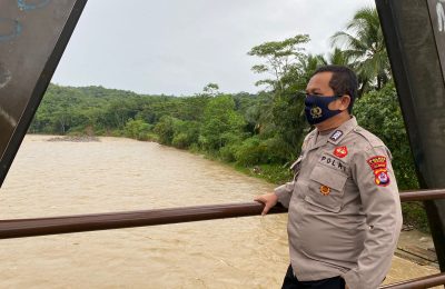 Antisipasi Banjir, Anggota Polsek Cipanas Polres Lebak Patroli Cek Debit Air