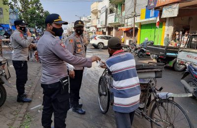 Lebak-Banten, Peduli Keselamatan warga masyarakat dimasa pandemi covid-19, Sat Binmas Polres Lebak Polda Banten bagikan masker ke warga masyarakat di Pasar...