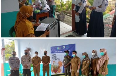 Kapolsek Cibadak Monitoring Pelaksanaan Vaksinasi Covid-19 Tahap 1 Pada Siswa Siswi SMPN 1Cibadak