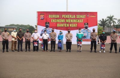 Tebar Kasih PPKM Level 4, Polda Banten Bagikan Sembako kepada buruh