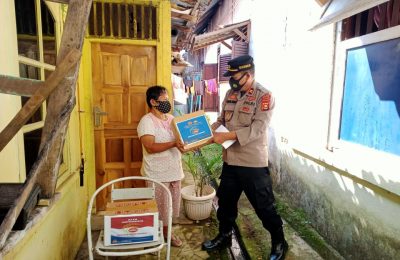 KAPOLSEK KARANG JAYA IPTU SURHADI MEMBERIKAN BANTUAN SEMBAKO KE WARGA