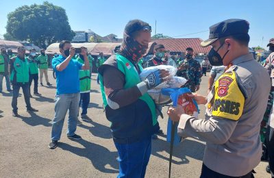 Pandeglang- Polres Pandeglang serahkan bantuan beras dan paket sembako bagi warga terdampak PPKM Mikro. 400 paket sembako yang dibagikan ke ojeg. Kegiatan...