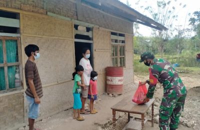 Kodim 1613/Sumba Barat Menyalurkan Bantuan Sembako Kepada Keluarga Pasien Positif Covid-19