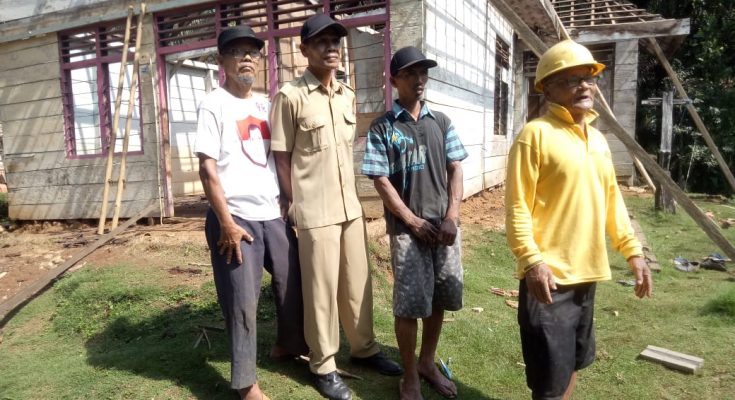 Ada hal yang menarik dalam giat Pra TMMD ini, salah satu rumah yang akan menerima renovasi yang ada di lorong Banjar Desa Bukit Beringin, Supriyanto pemilik rumah sudah memulai bongkar rumah dengan di bantu warga secara bergotong royong.