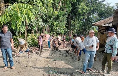 Jalan Penghubung Dua Desa Rusak Parah Masyarakat Citaman-Sikulan Perbaiki Dengan Swadaya