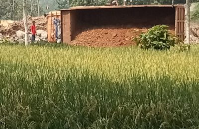 Angkut Tanah Merah ke Proyek Tol Serang – Panimbang, Tronton Terguling PANDEGLANG, – Truk tronton pengangkut material tanah merah ke proyek Tol Serang...