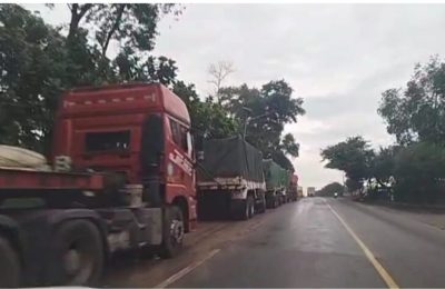 Inderalaya-Puluhan kendaraan raksasa trailer raksasa berjejer panjang menggunakan badan jalan depan PT Arwana Jalintim Inderalaya Utara-Prabumulih, hal tersebut membuat...