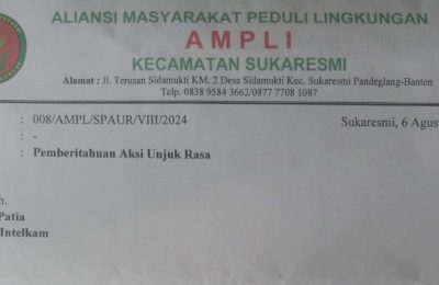 Pandeglang,- Globalmediatama.com,- Aliansi Masyarakat Peduli Lingkungan (AMPLI) Kecamatan Sukaresmi akan melakukan aksi unjuk rasa di depan Kantor Kecamatan...