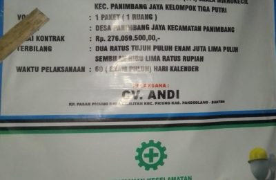 PANDEGLANG, – Globalmediatama.com,- Soal Proyek Pembangunan Bedah Unit Pengolah Ikan (UPI) Skala Mikro Kecil di wilayah Kecamatan Panimbang Kabupaten...