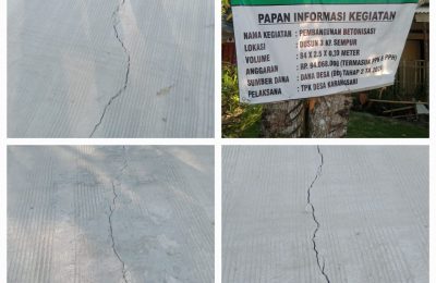 Parah,,!! Bangunan Rabat Beton Dana Desa Tahap 2 TA 2024, di Desa Karangsari Diduga Sudah Retak Dan Patah Pandeglang – Globalmediatama.com– Proyek pembangunan jalan...