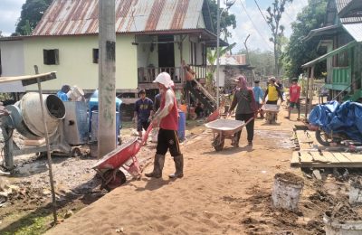 Warga Desa Arisan Musi Bahu Membahu Gotong Royong Bangunan Pelebaran Jalan Muar Enim,- Globalmediatama.com.-Dengan sigap bergotong royong membangun pengecoran jalan Desa...