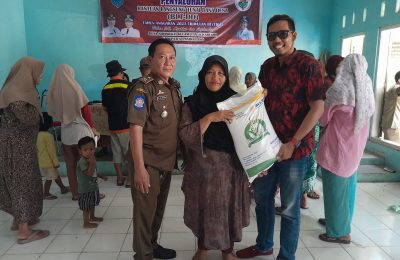Kades Sidamukti Hadiri Penyaluran Bantuan Pangan Sosial Kepada Warga Penerima Manfaat
