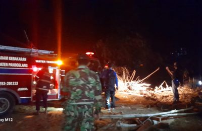Lahan Kosong Terbakar, Sertu Dede Suharsono Babinsa Koramil 0111/Pagelaran Bantu Lakukan Pemadaman