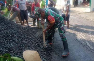Perbaiki Infrastruktur Desa, Babinsa Bantu Cor jalan
