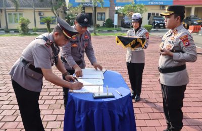 Upacara Sertijab Kabag Log, Kasat Samapta, Kapolsek Leuwidamar, Sajira dan Curugbitung, di Pimpin Langsung Kapolres Lebak