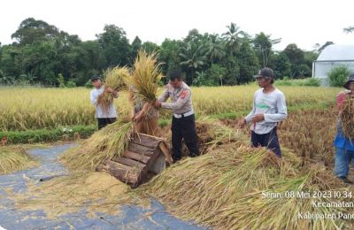 Jaga Ketahanan Pangan, Polisi Bantu Petani Panen Padi