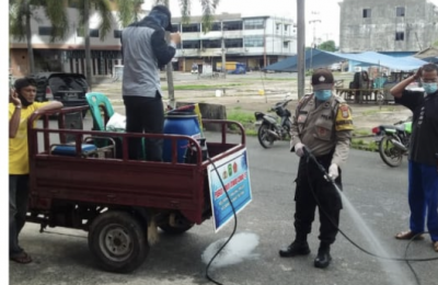 Polsek Bukit Bestari Lakukan Penyemprotan Cairan Desinfectan di Kawasan Bintan Plaza