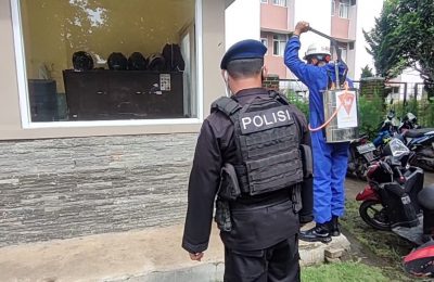 Semprotkan Disinfektan Ke Pos Satpam Bumi Kartika Asri, Wujud Bakti Sat Brimob Polda Jabar Untuk Masyaraka