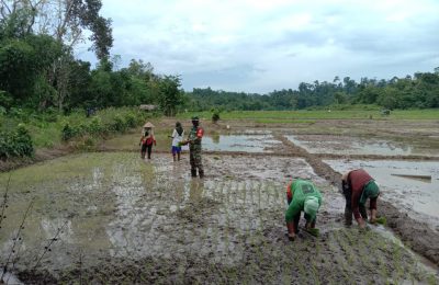 Dukung Swasembada Pangan, Babinsa Bantu Petani Menanam Padi di Wilayah Binaan