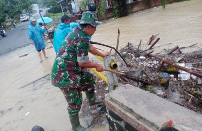 Air dibawah Jembatan Tersumbat, Koramil 0116/Cikeusik, Ajak Warga Bersihkan Sampah