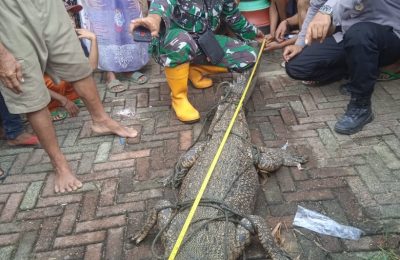 Geger,! Seekor Buaya Ditemukan di Bantaran Sungai Cisanggoma Desa Kubangkampil