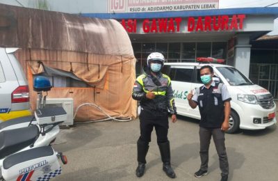 Utamakan Keselamatan Pasein, Unit Turjawali Satlantas Polres Lebak Polda Banten Kawal Ambulance Pembawa Pasein Rujukan ke Rumah Sakit Umum Adjidarmo