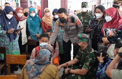 Diwaktu yang Bersamaan Kapolsek Warunggunung dan Camat Warunggunung monitoring Vaksinasi Tingkat Sekolah Dasar (SD)