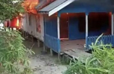 Jambi-GlobalinvestigasiNews.com. 2021/06/04. Dua unit rumah Panggung semi permanen di Kelurahan Bandar jaya Rt 01 Dusun 01Kecamatan Rantau Rasau Ludes di lalap si...