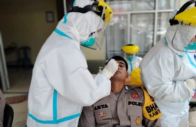 Jelang Pam Pilkakam 2021 di Way Kanan, Personil Polres Way Kanan Jalani Rapid Test