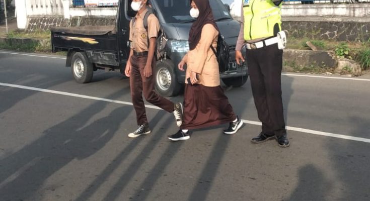 Pandeglang, Jajaran unit lantas Polsek Pandeglang, laksanakan strong point pagi,