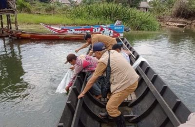 Aparatur Desa Fajar Indah Bersama Dinas Perikanan Restocking Ikan Di Jurang Kuali