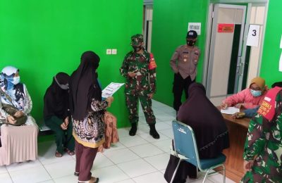 Koramil Dan Polsek Jatiroto Dampingi Petugas Kesehatan Laksnakan Vaksinasi Terhadap Lansia