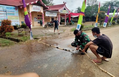 SERDA TINI DIBANTU WARGA SIGAP PERBAIKI SELANG BOCOR