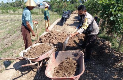 Bhabinkamtibmas Desa Setuta Bantu Warga Timbun Jalan