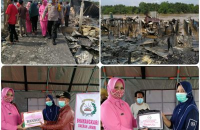 Bentuk Kepedulian Bhayangkari Cabang Tanjung Jabung Timur Beri Bantuan Korban Kebakaran Desa Mendahara Tengah