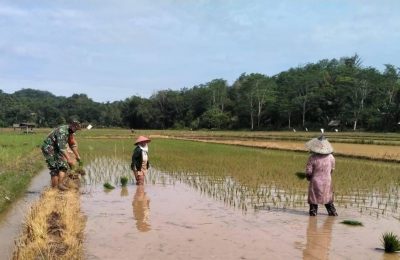 Tingkatkan Ketahanan Dimasa Pandemi Covid, Babinsa Bantu Petani Menanam Padi