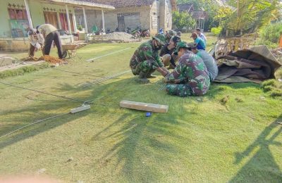 Kekompakan Prajurit TNI dan Warga Saat Merakit Besi Untuk Tiang Beton