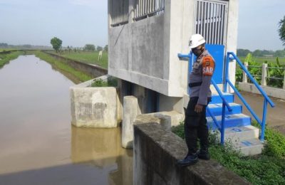 GM – Anggota Kompi 4 Batalyon C Pelopor Sat Brimob Polda Jabar Bharatu Rizal Bahtiar melaksanakan giat pengecekan debit air di pintu air Desa Winong...