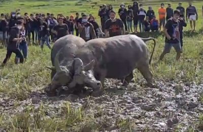 Sulbar Messawa Mamasa- globalinvestigasinews.co.id ,Laga kerbau dalam rangka Mebaba’ Almarhum SEBO ( indo’Sondok) yang berlangsung desa pasapa mambu...