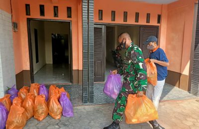 Aksi Sosial, Babinsa Sumber Bagikan Sembako Kepada Warga Terdampak Covid – 19