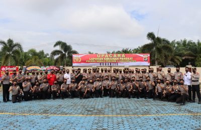 Mesuji – Polres Mesuji melaksanakan Upacara Korps Raport Kenaikan Pangkat PAMA dan Brigadir di Lapangan Apel Mapolres Mesuji, Sabtu (01/01/22) pagi. Upacara...