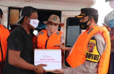 Kabid Humas Polda Jabar : Dari Atas Kapal Patroli Polisi Bagikan Bansos Sembako Kepada Nelayan Dimasa PPKM Darurat